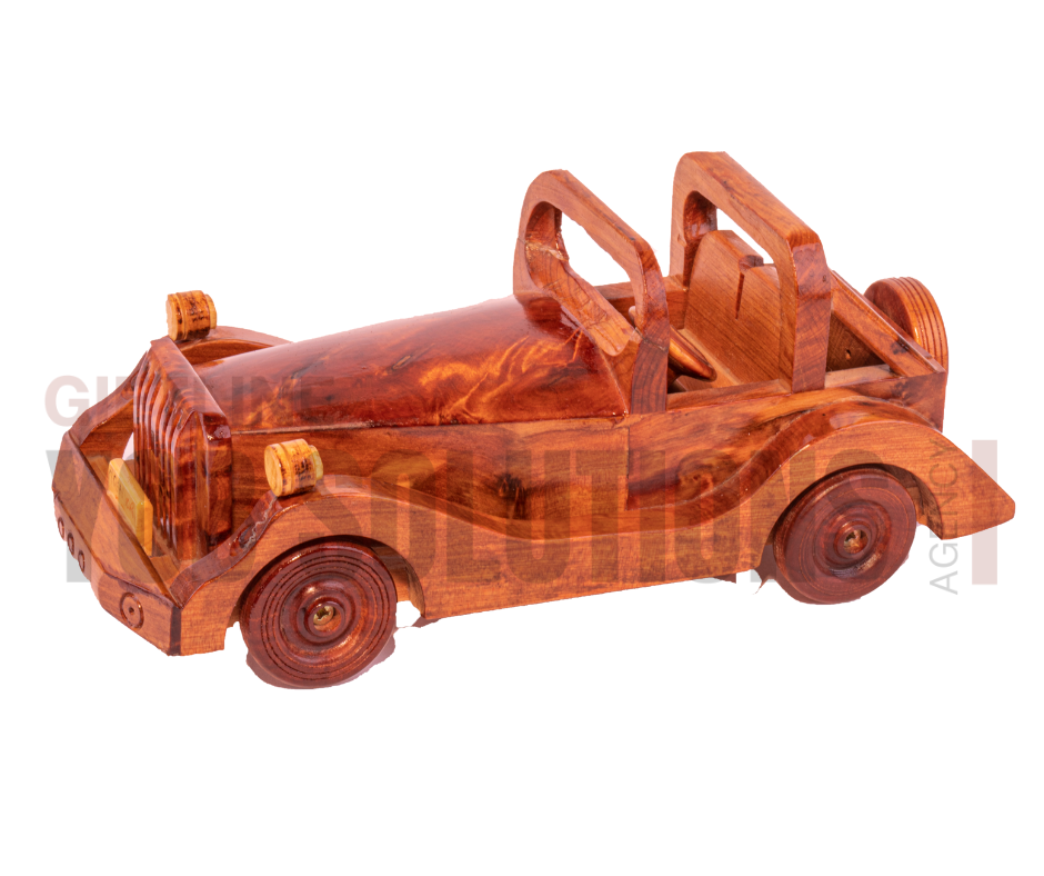 Fabriquée à partir de bois massif soigneusement sélectionné, chaque détail est travaillé avec précision : les roues, les sièges, la calandre et les courbes élégantes rappellent le charme intemporel des automobiles d’antan.